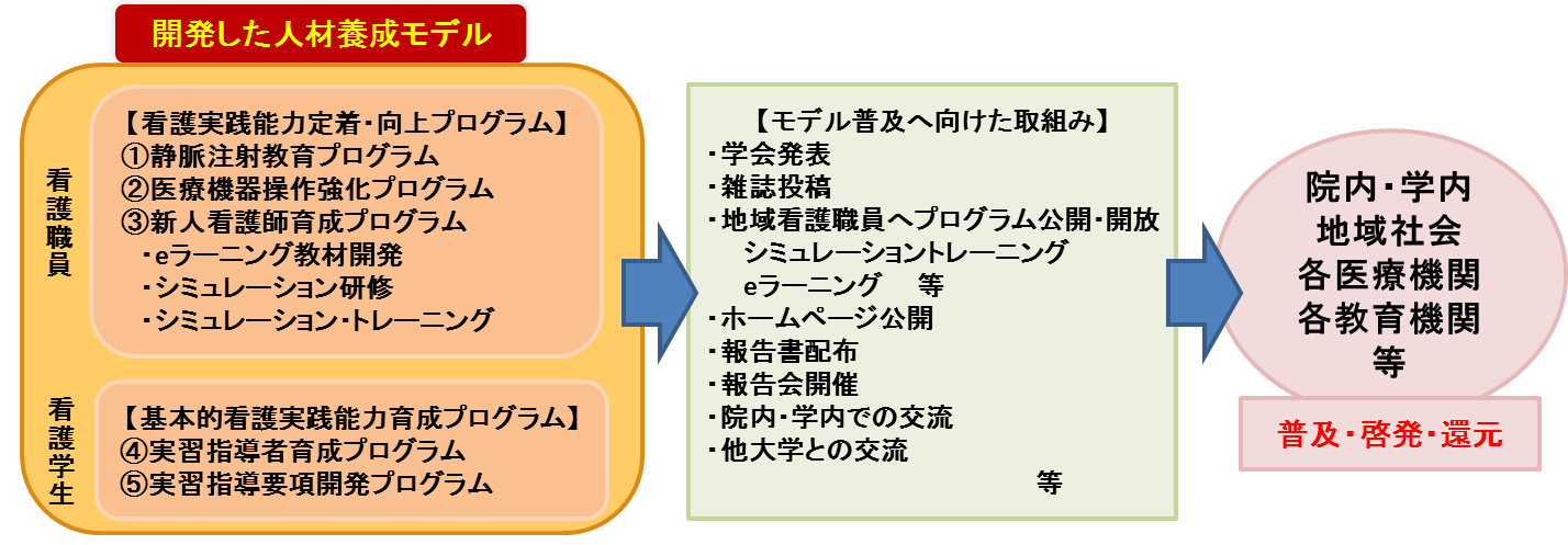 プロジェクトで開発した人材養成モデル等を院内だけでなく、社会へ還元し普及を促進するべく、広報活動を積極的に行ってきています。